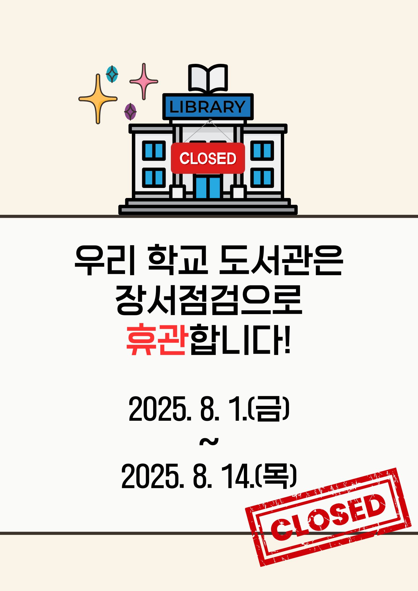 2025학년도 여름 방학 중 학교도서관 장서점검안내
